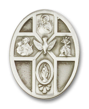 Gold Finish 5-Way Holy Spirit Visor Clip. The visor clip is a Gold Finish 5-Way / Holy Spirit. The visor clip measures 1 5/8-inch tall by 1 1/4-inch wide.