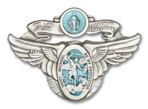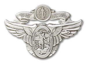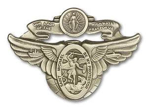 Gold Finish Our Lady of the Highway St Michael Visor Clip. The visor clip is a Gold Finish Our Lady of the Highway/St Michael. The visor clip measures 2-inch tall by 3-inch wide. Saint Michael the Archangel is the Patron Saint of Police Officers/EMTs.
