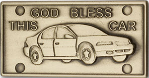 Gold Finish God Bless This Car Visor Clip. The visor clip is a Gold Finish God Bless This Car.