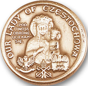 Gold Finish Our Lady of Czestochowa Visor Clip. The visor clip is a Gold Finish Our Lady of Czestochowa. The visor clip measures 1-inch tall by 1 1/8-inch wide.