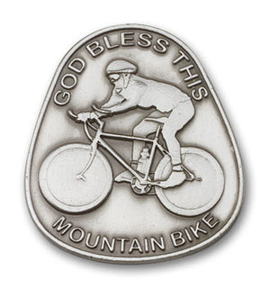 Gold Finish God Bless This Mountain Bike Visor Clip. The visor clip is a Gold Finish God Bless. The visor clip measures 1 5/8-inch tall by 1 1/2-inch wide.