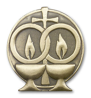 Gold Finish Wedding Visor Clip. The visor clip is a Gold Finish Wedding. The visor clip measures 2-inch tall by 1 7/8-inch wide.