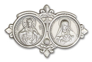 Gold Finish Jesus Mary Visor Clip. The visor clip is a Gold Finish Jesus / Mary. The visor clip measures 2-inch tall by 3 1/4-inch wide.