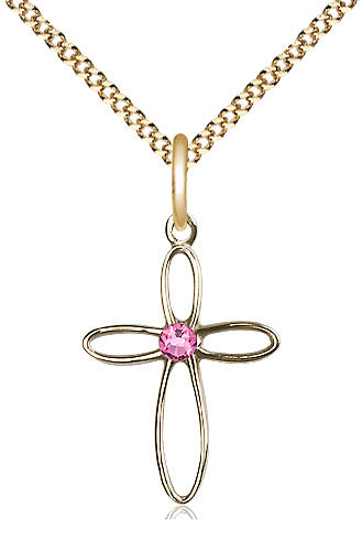 14kt Gold Filled Loop Cross Pendant with a 3mm Rose Swarovski stone