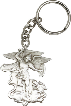 The keychain is a Silver Oxide or Gold Oxide Saint Michael the Archangel
