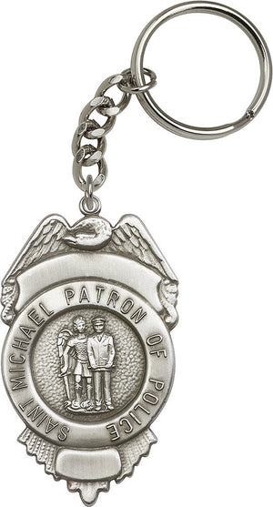 The keychain is a Silver Oxide or Gold Oxide Saint Michael the Archangel