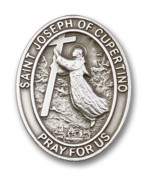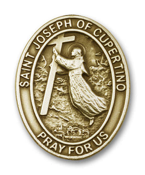 Gold Finish St Joseph of Cupertino Visor Clip. The visor clip is a Gold Finish Saint Joseph of Cupertino. The visor clip measures 1 5/8-inch tall by 1 1/4-inch wide Saint Joseph of Cupertino is the Patron Saint of Pilots/Air Force.