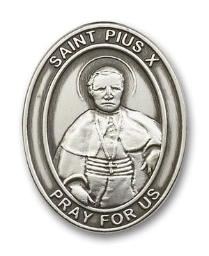 Gold Finish St Pius X Visor Clip. The visor clip is a Gold Finish Saint Pius X. The visor clip measures 1 5/8-inch tall by 1 1/4-inch wide Saint Pius X is the Patron Saint of First Communicants.