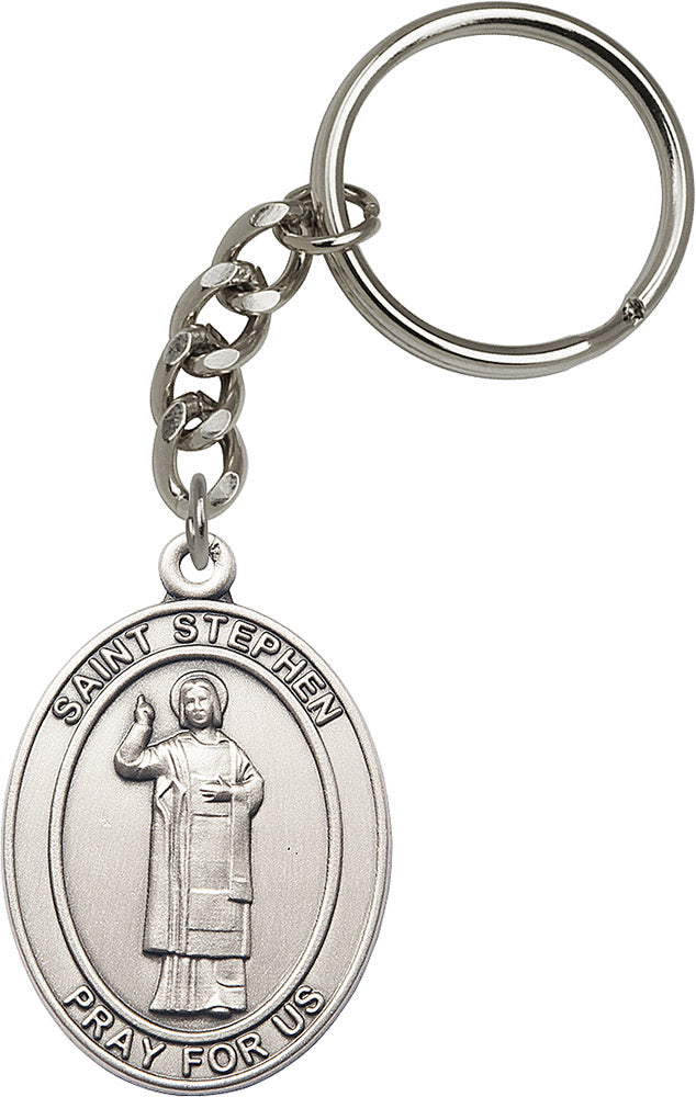 The keychain is a Silver Oxide Saint Stephen the Martyr