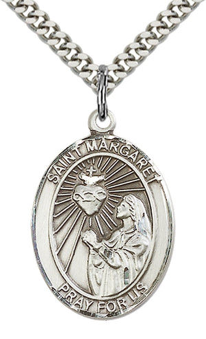 Sterling Silver Saint Margaret Mary Alacoque Pendant on an 24-inch Light Rhodium Heavy Curb Chain. Saint Margaret Mary Alacoque Medal