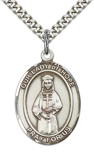 14kt Gold Filled Our Lady of Hope Pendant on an 24-inch Gold Plated Heavy Curb Chain. Our Lady of Hope Medal