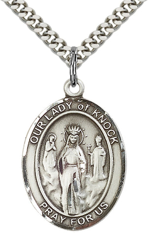 14kt Gold Filled Our Lady of Knock Pendant on an 24-inch Gold Plated Heavy Curb Chain. Our Lady of Knock Medal